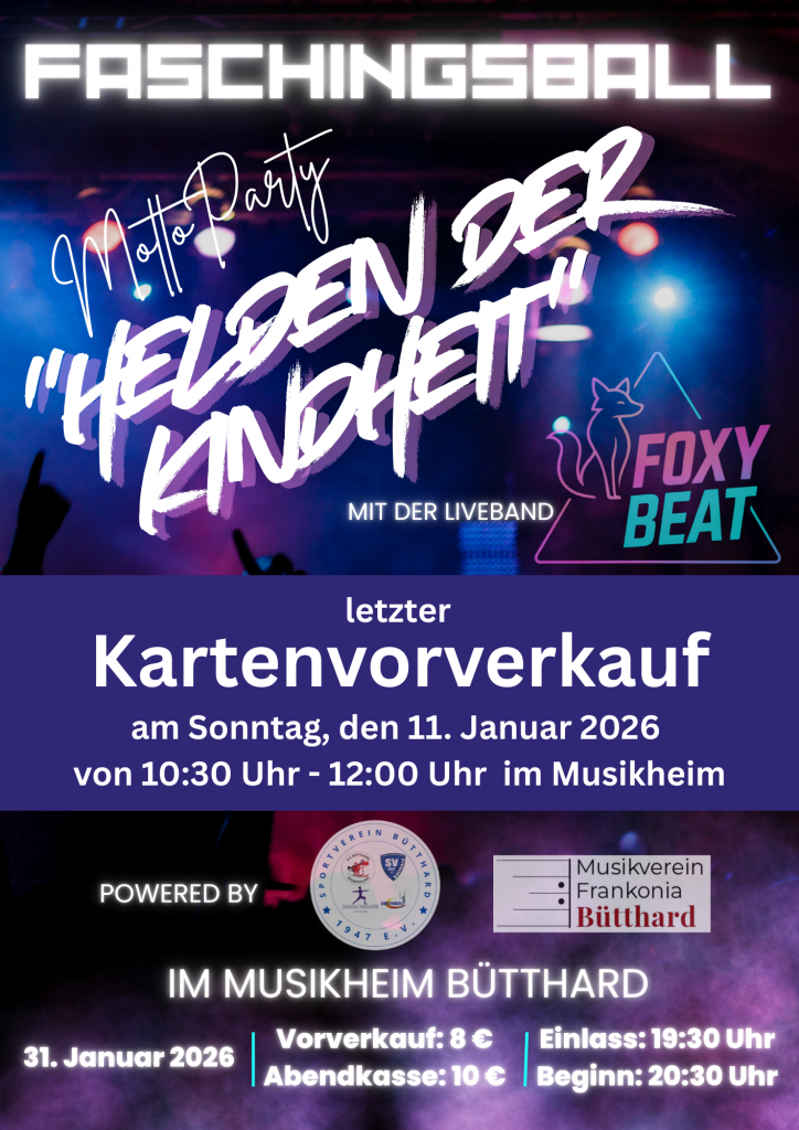 Für das Jahr 2026 wünschen wir Euch Glück,Gesundheit, Gottes Segen und Erfolg,verbunden mit viel Spaß am und im SV Bütthard.