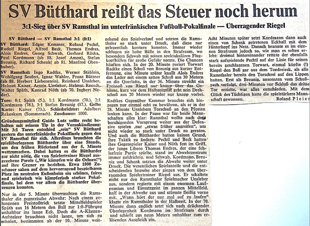 DFB-Pokalsieger Unterfranken 1981 Hier der Spielbericht zum Pokalsieg 1981: Mit großem Einsatz und Teamgeist sicherte sich unsere Mannschaft den Titel. Ein unvergessener Erfolg, der bis heute Teil unserer Vereinsgeschichte ist!